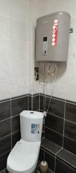 Санузел совмещенный, оформлен в современном стиле с качественной плиткой. В ванной комнате установлен водонагреватель.