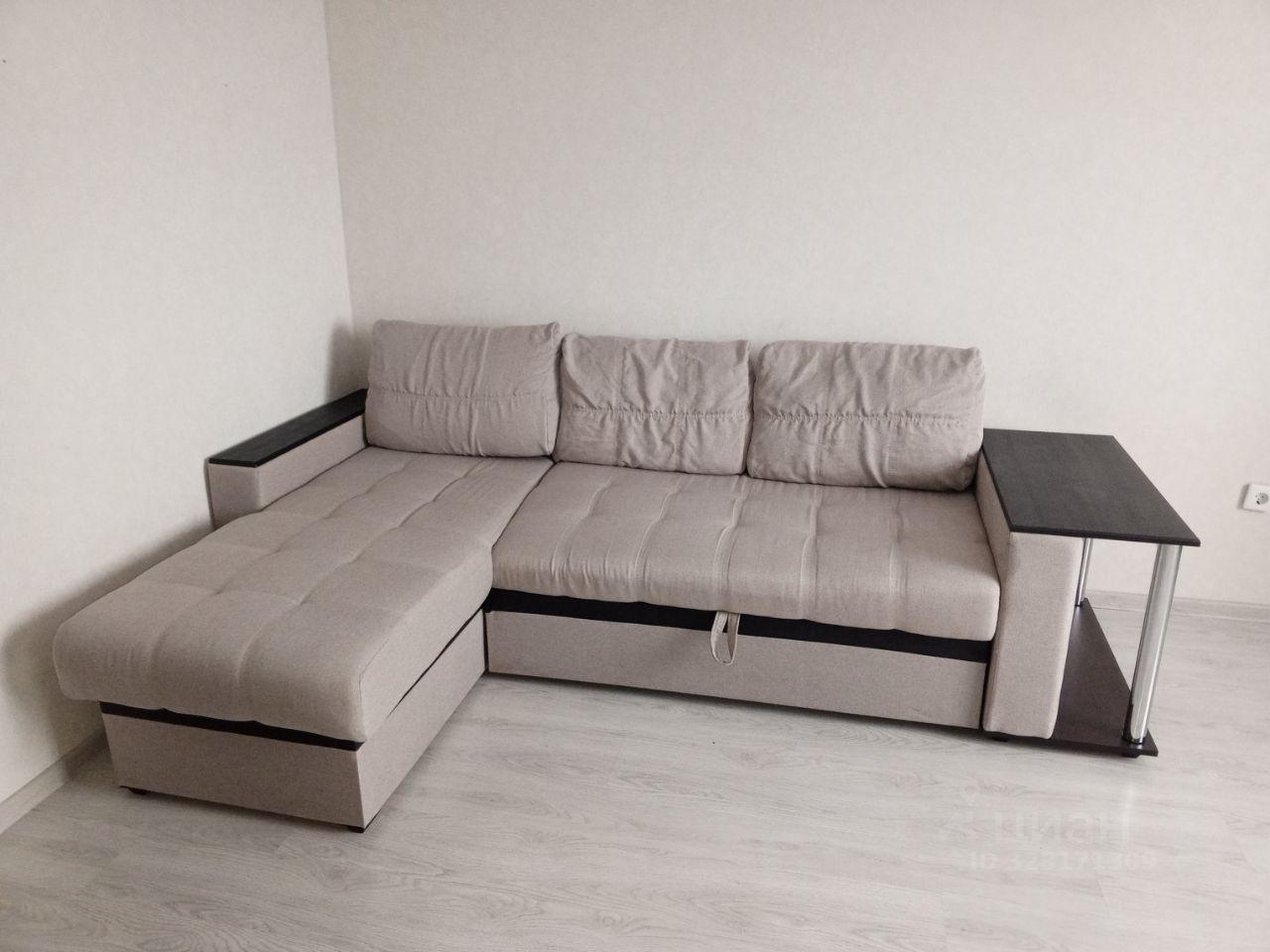 В комнате диван, подставка под телевизор. Вместит...