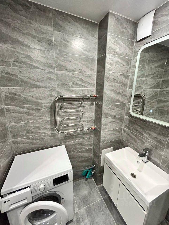 Современная ванная комната, стиральная машина.