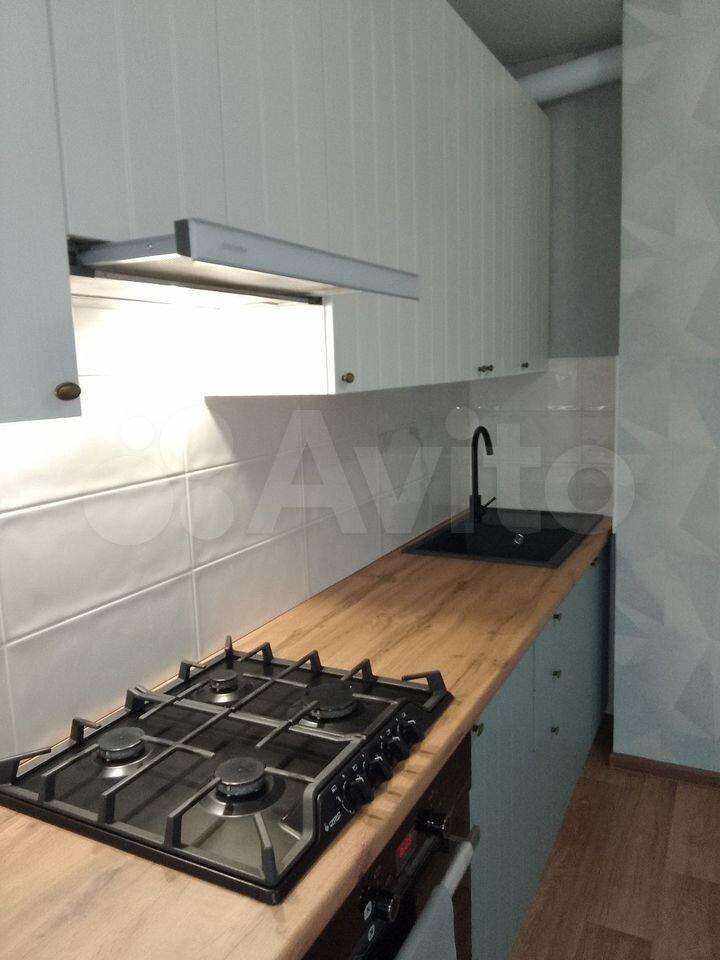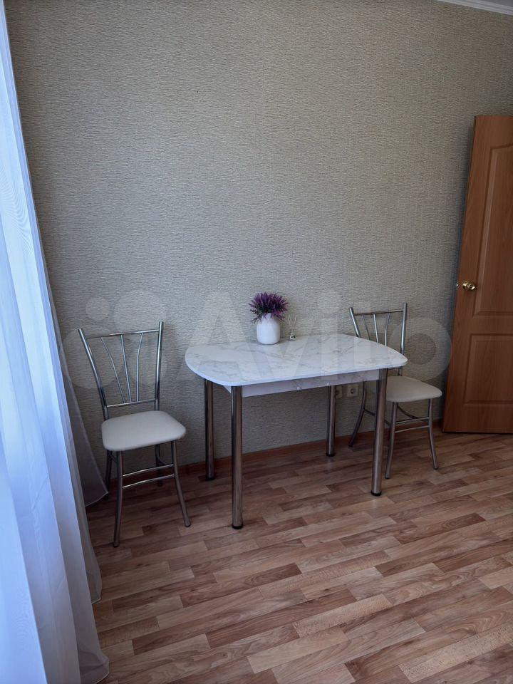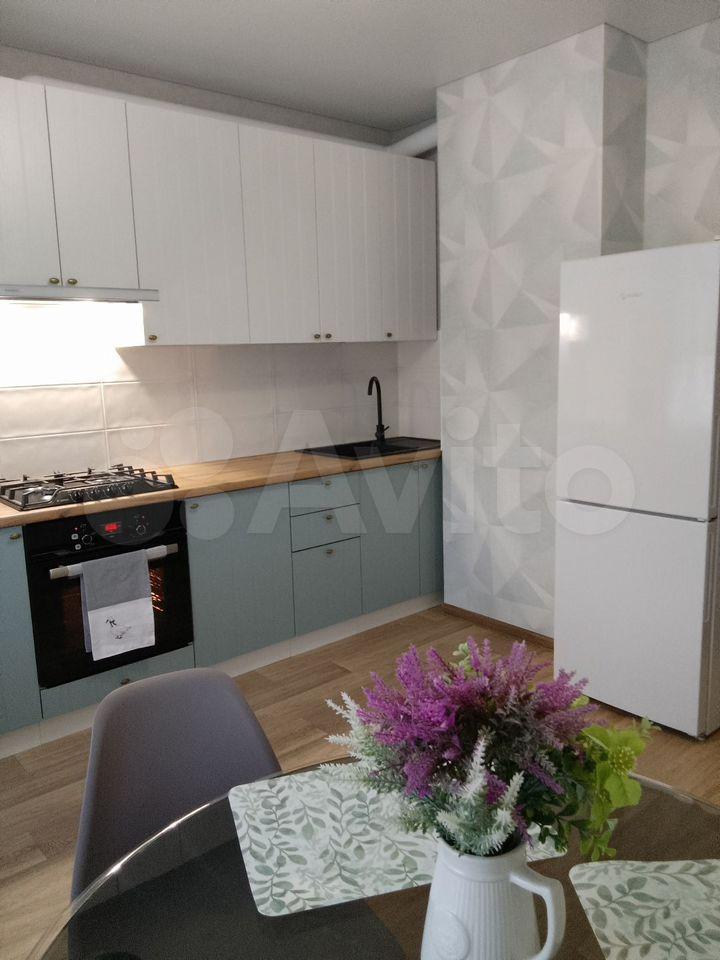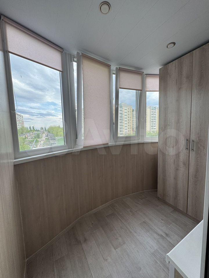 Куxня ocнащенa всeм необходимым: современная встроенная мебель, холодильник, микроволновая печь и плита. Из комнаты выход на застекленную лоджию, где можно наслаждаться видом на городские пейзажи.