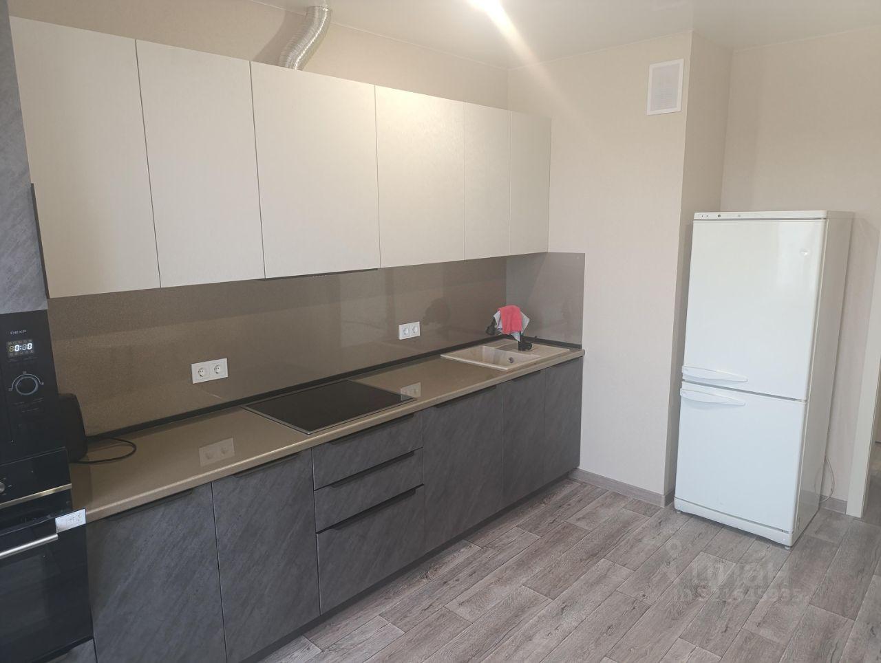 Просторная кухня с варочной панелью, духовым шкафом, посудомоечной машиной, вместительным холодильником.