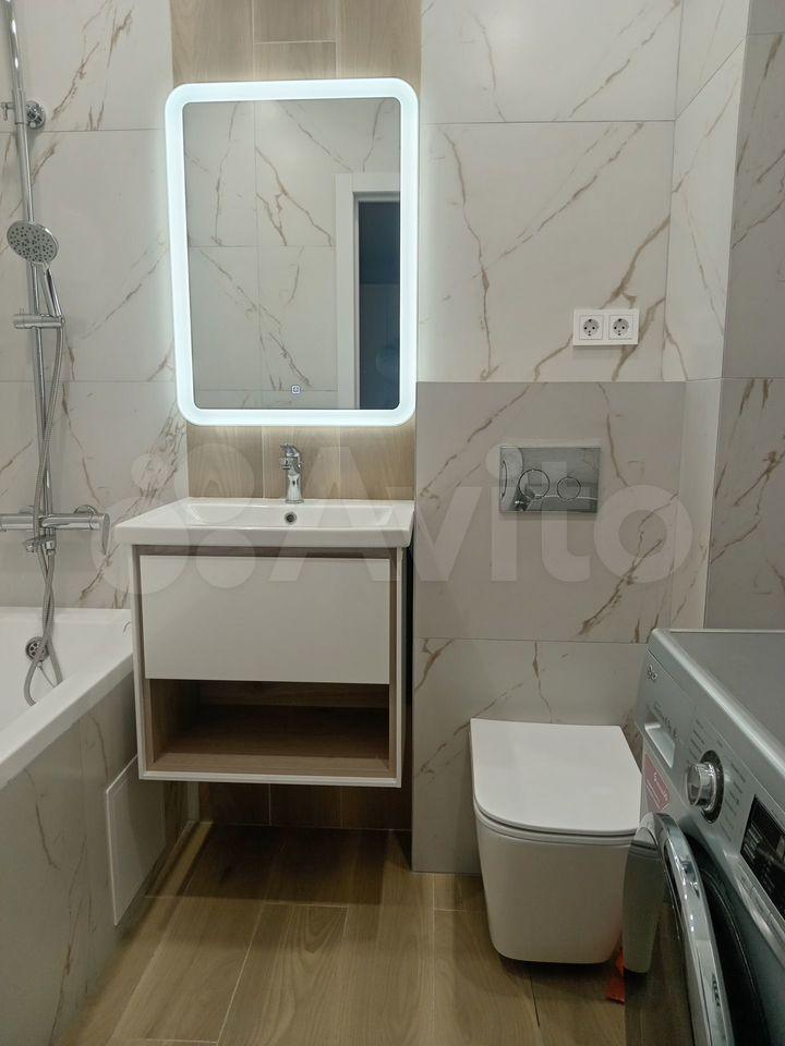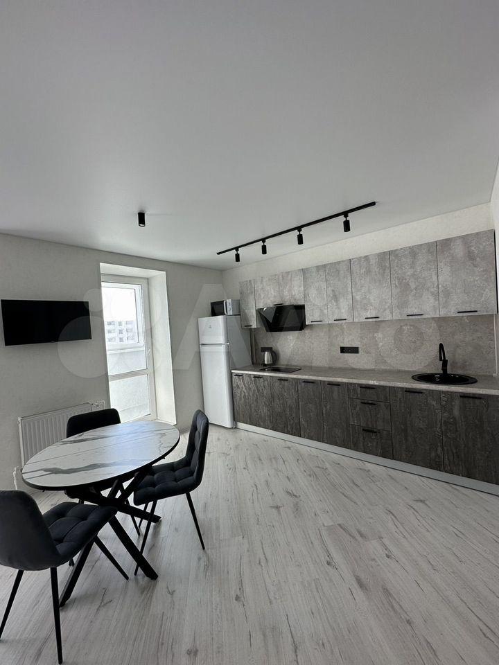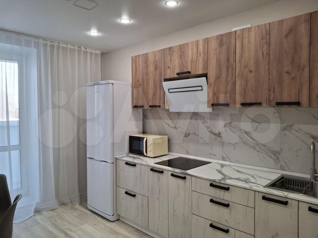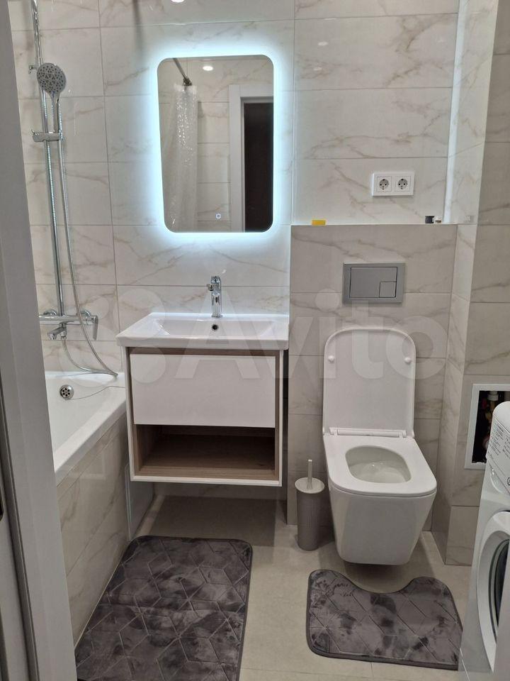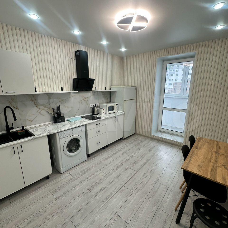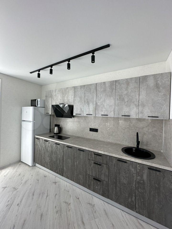 В квартире есть все необходимое для комфортного проживания. Выполнен современный евроремонт, установлена мебель в комнате и на кухне. Из техники — холодильник, индукционная плита,микроволновая печь и стиральная машина. Планировка предусматривает совмещенный санузел с ванной, что удобно для ежедневного использования.