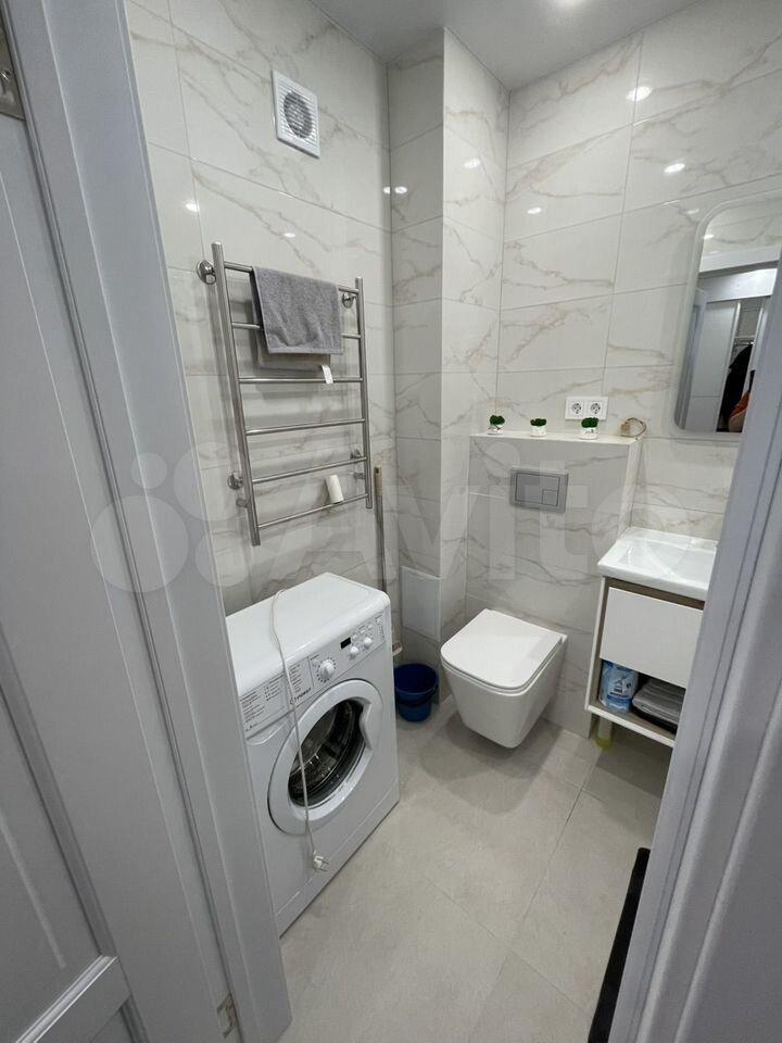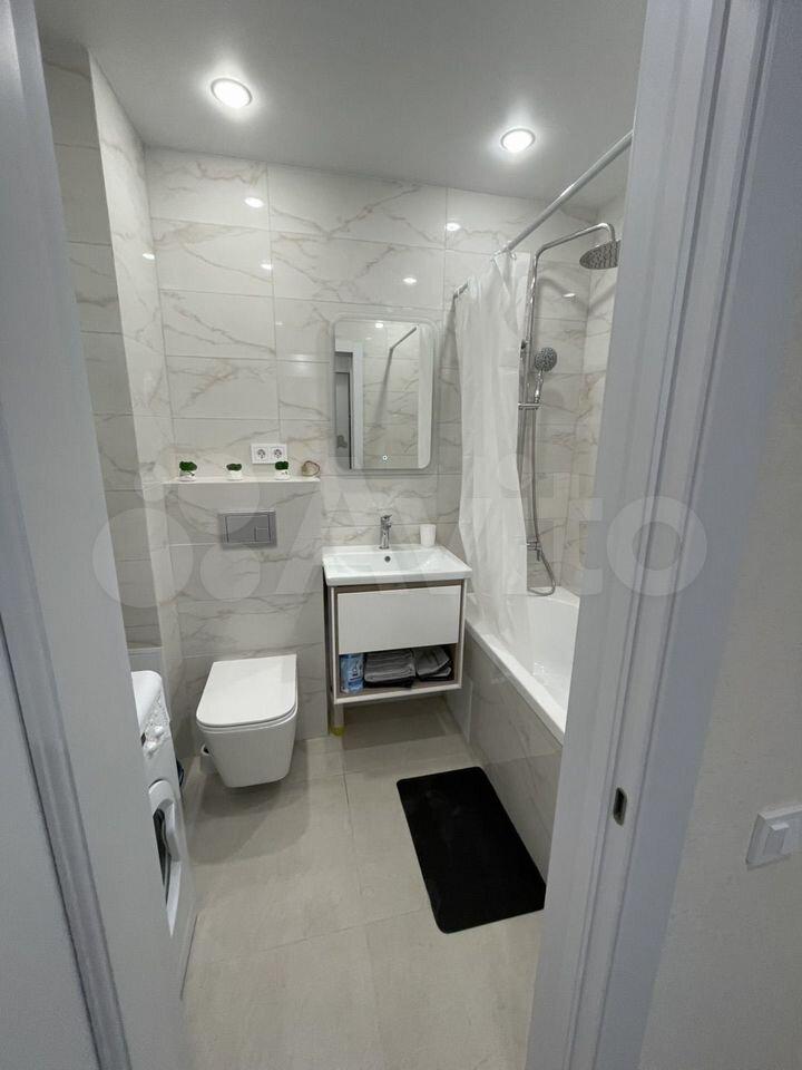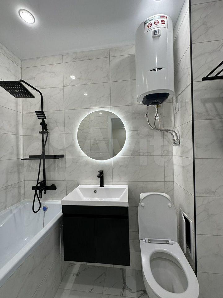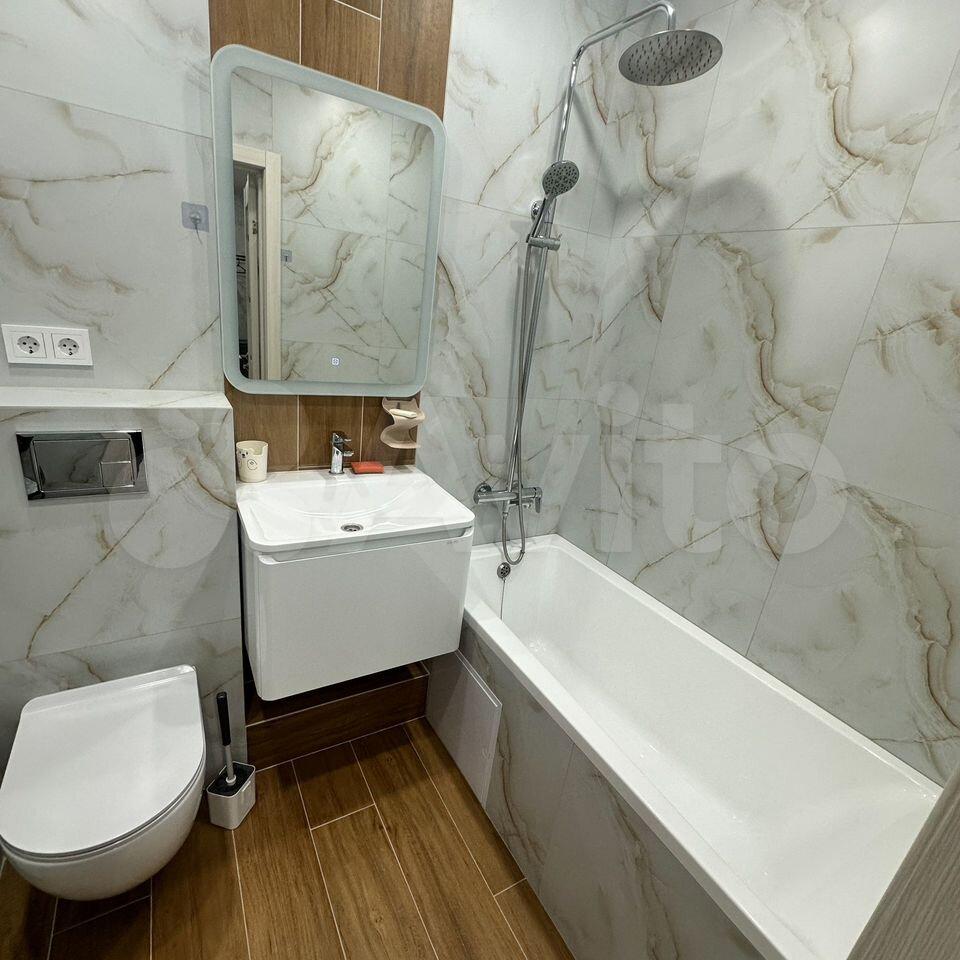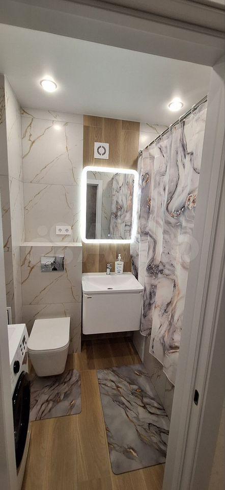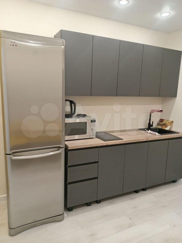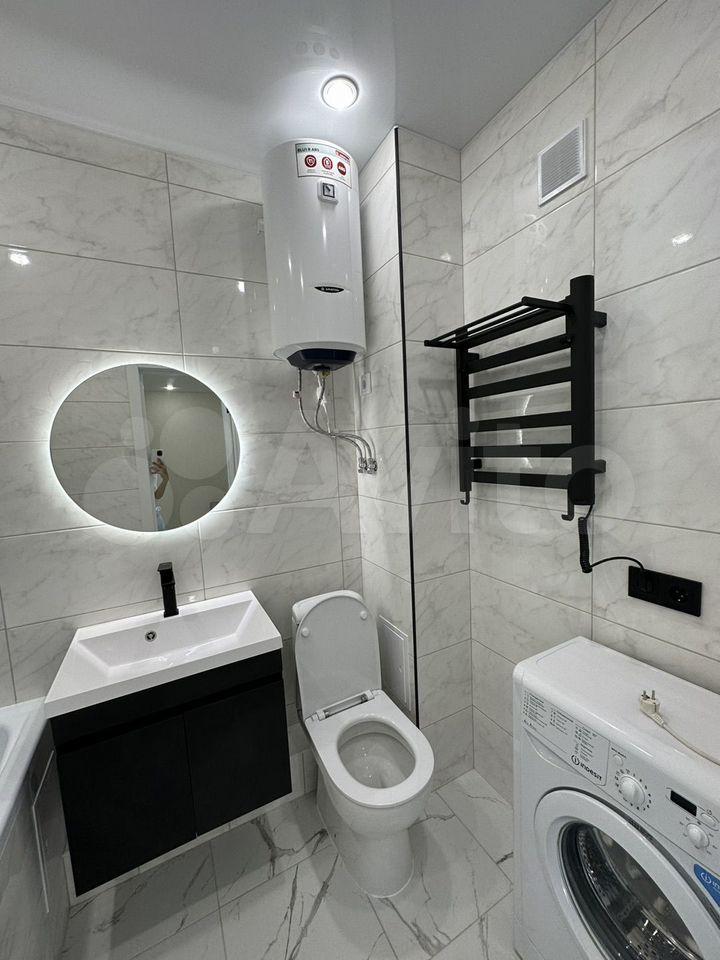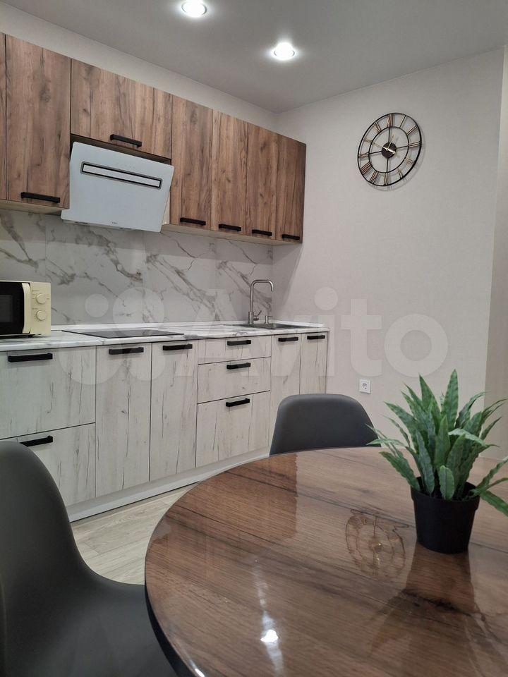 В квартире есть все необходимое для комфортного проживания. Выполнен современный евроремонт, установлена мебель в комнате и на кухне. Из техники — холодильник, индукционная плита,микроволновая печь и стиральная машина. Планировка предусматривает совмещенный санузел с ванной, что удобно для ежедневного использования.