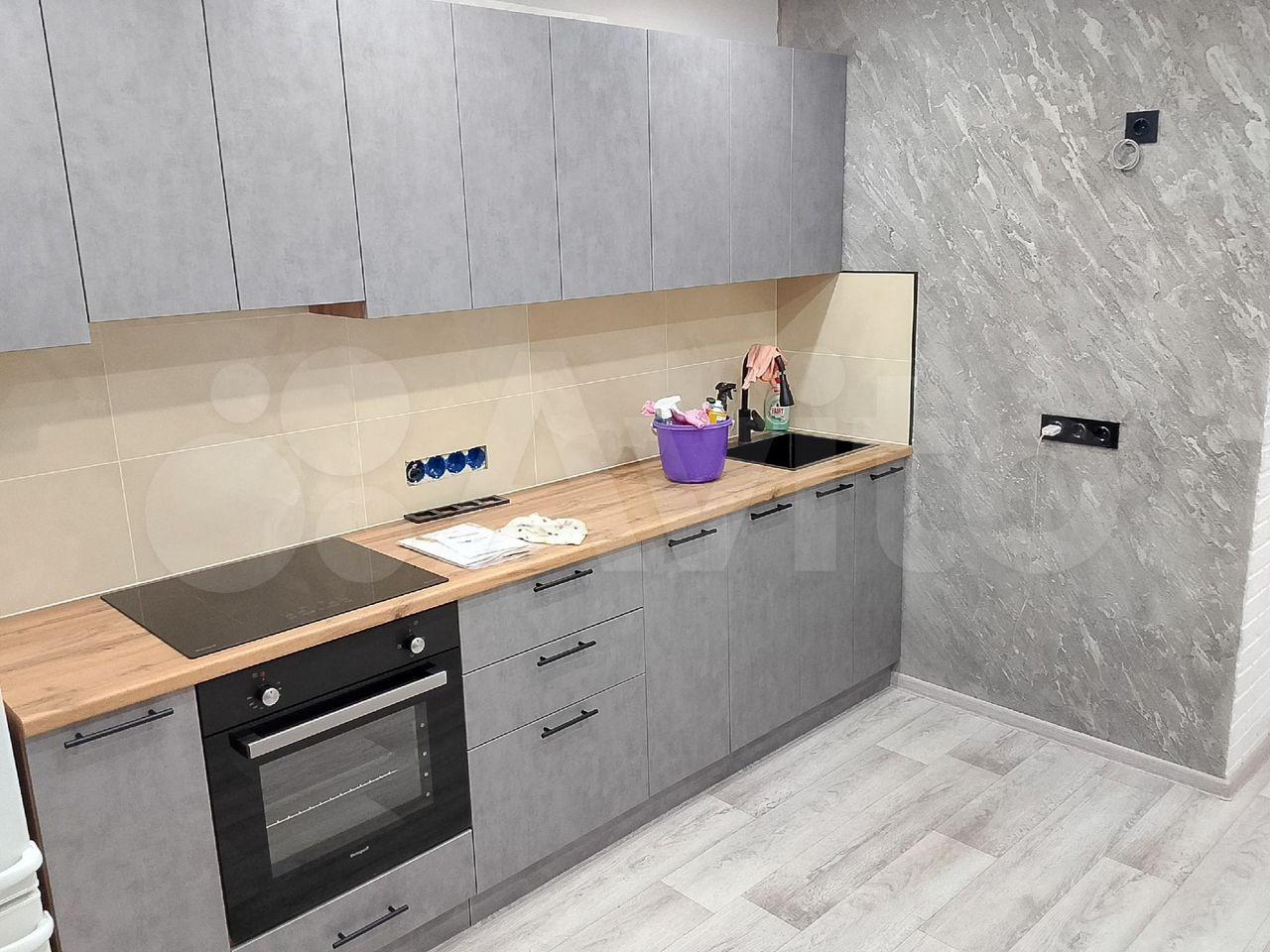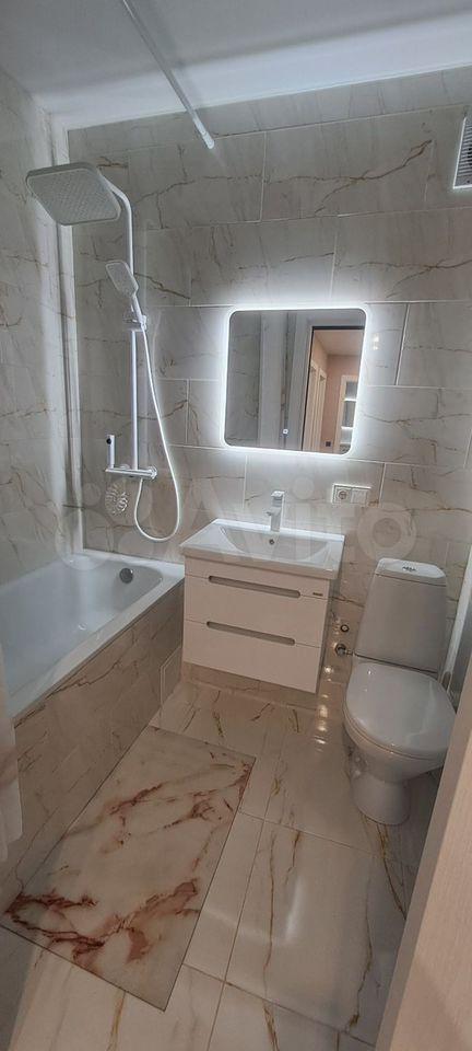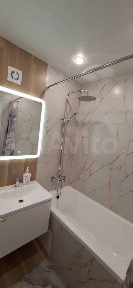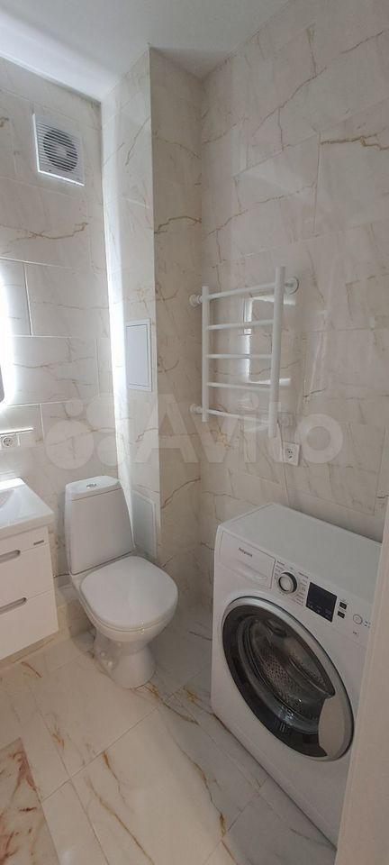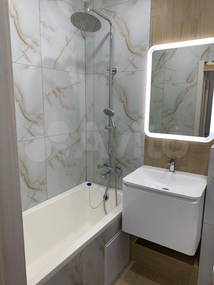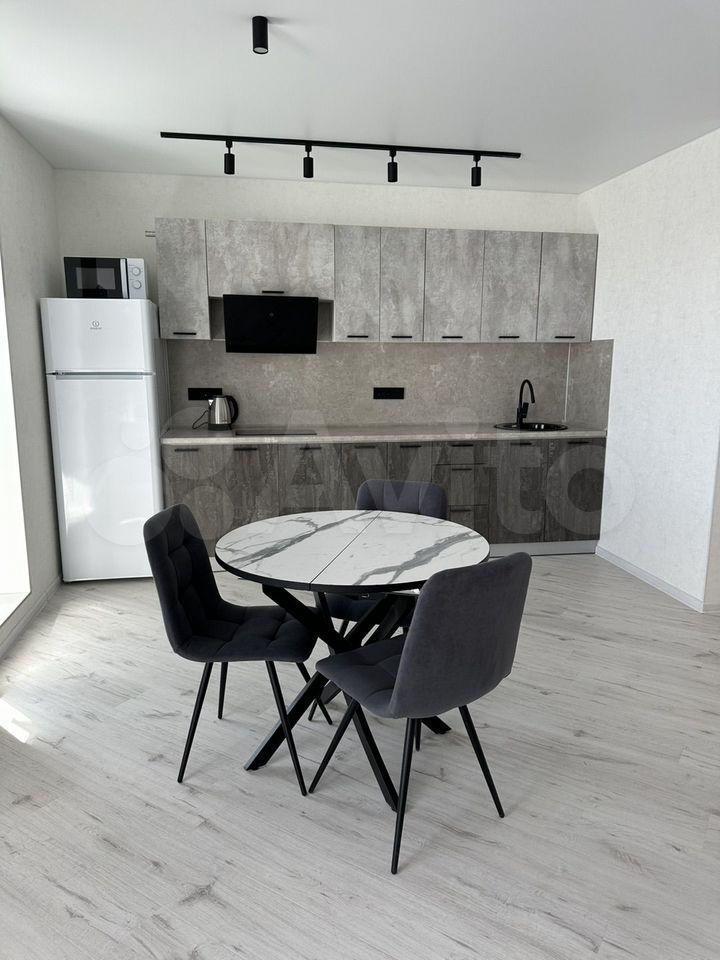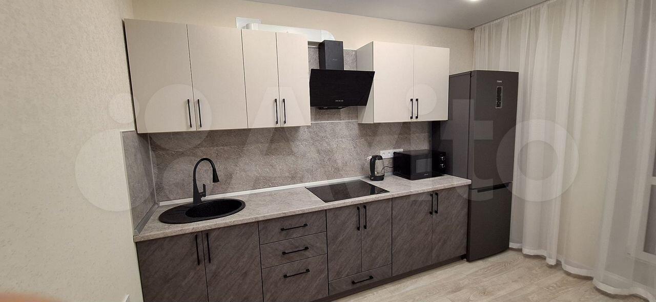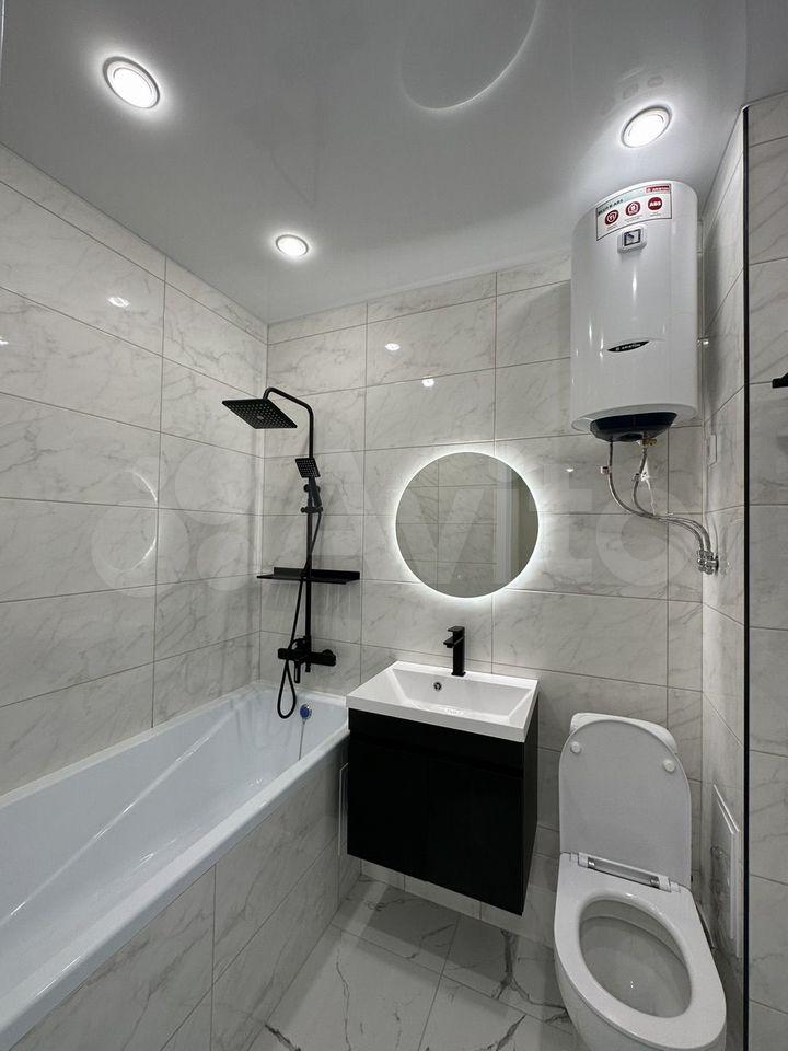 В квартире есть все необходимое для комфортного проживания. Выполнен современный евроремонт, установлена мебель в комнате и на кухне. Из техники — холодильник, индукционная плита,микроволновая печь и стиральная машина. Планировка предусматривает совмещенный санузел с ванной, что удобно для ежедневного использования.