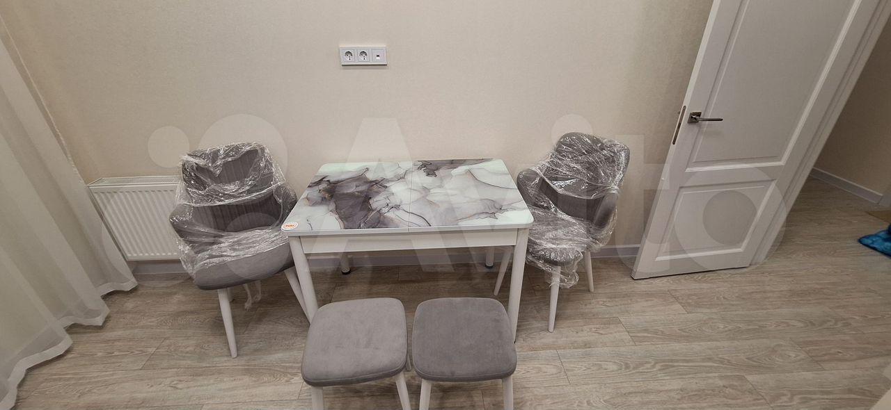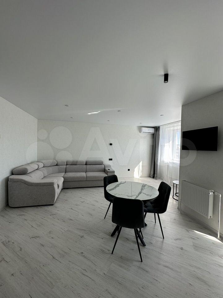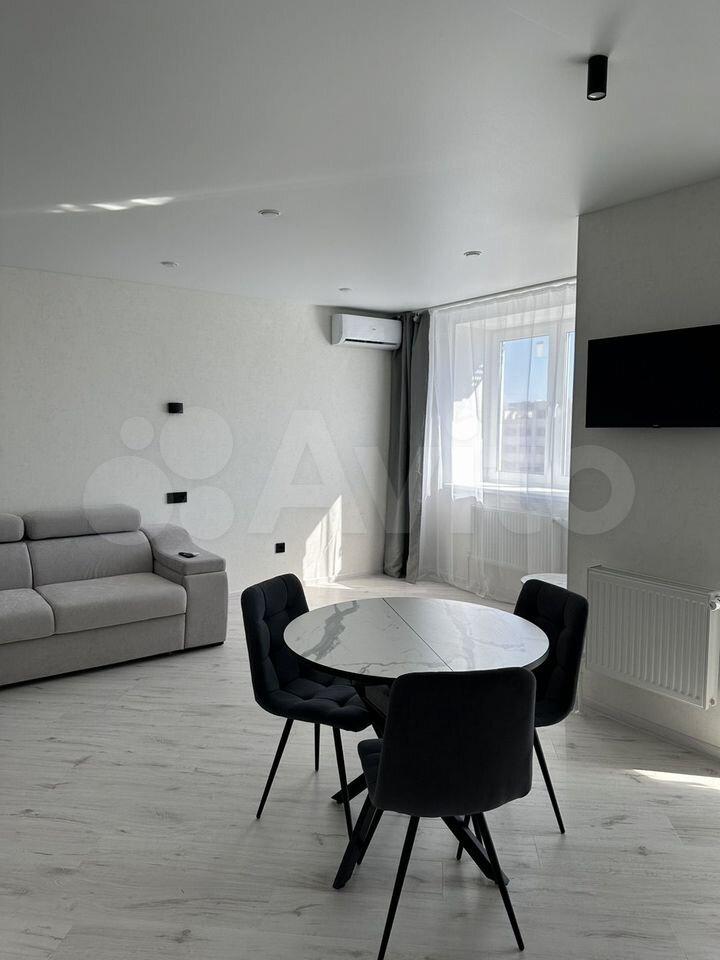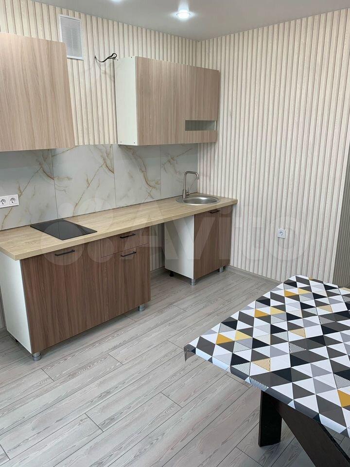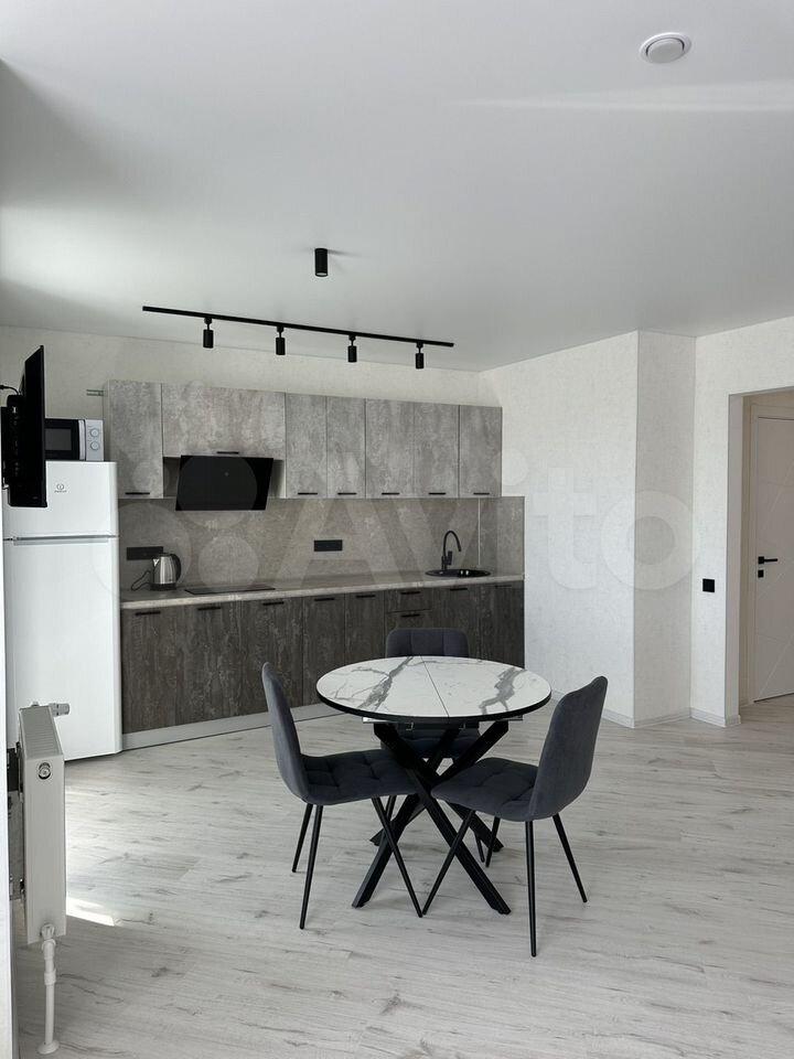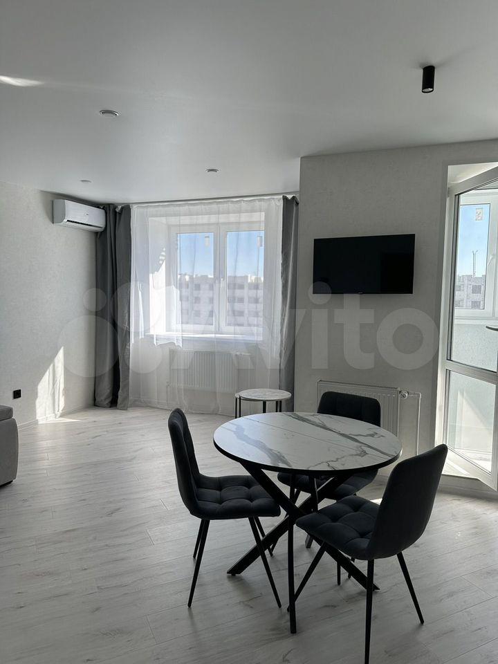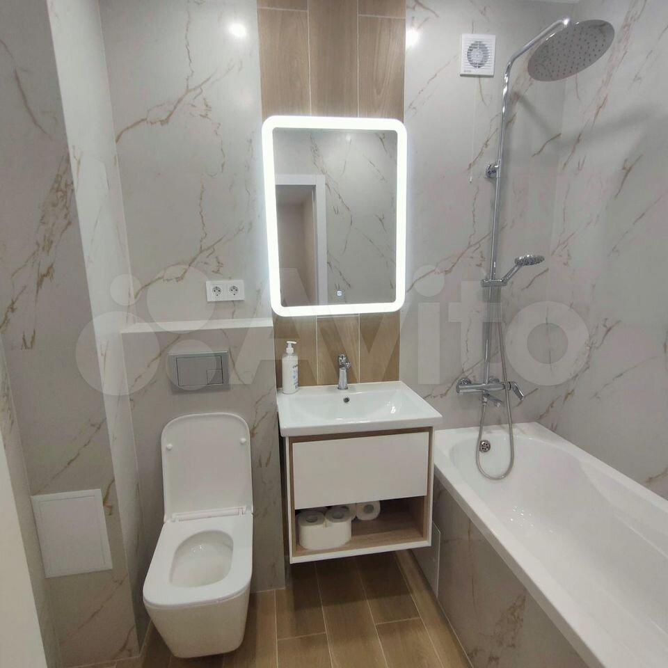 В квартире есть все необходимое для комфортного проживания. Выполнен современный евроремонт, установлена мебель в комнате и на кухне. Из техники — холодильник, индукционная плита,микроволновая печь и стиральная машина. Планировка предусматривает совмещенный санузел с ванной, что удобно для ежедневного использования.