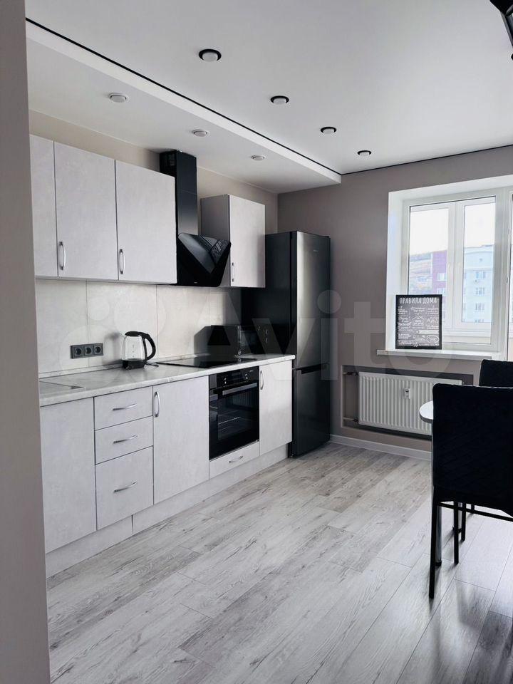 Отличная планировка. Большая кухня (12 метров)с выходом на отделанную лоджию. Кухня оборудована всем необходимым: варочная поверхность, духовой шкаф, посудомоечная машина, холодильник, микроволновая печь, чайник, посуда.